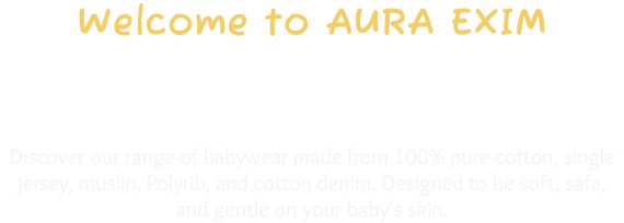 At AURA EXIM, we create comfortable babywear for preemies to toddlers (0-6 years) using 100% pure cotton and high-quality fabrics, ensuring safety and style for your baby’s delicate skin.